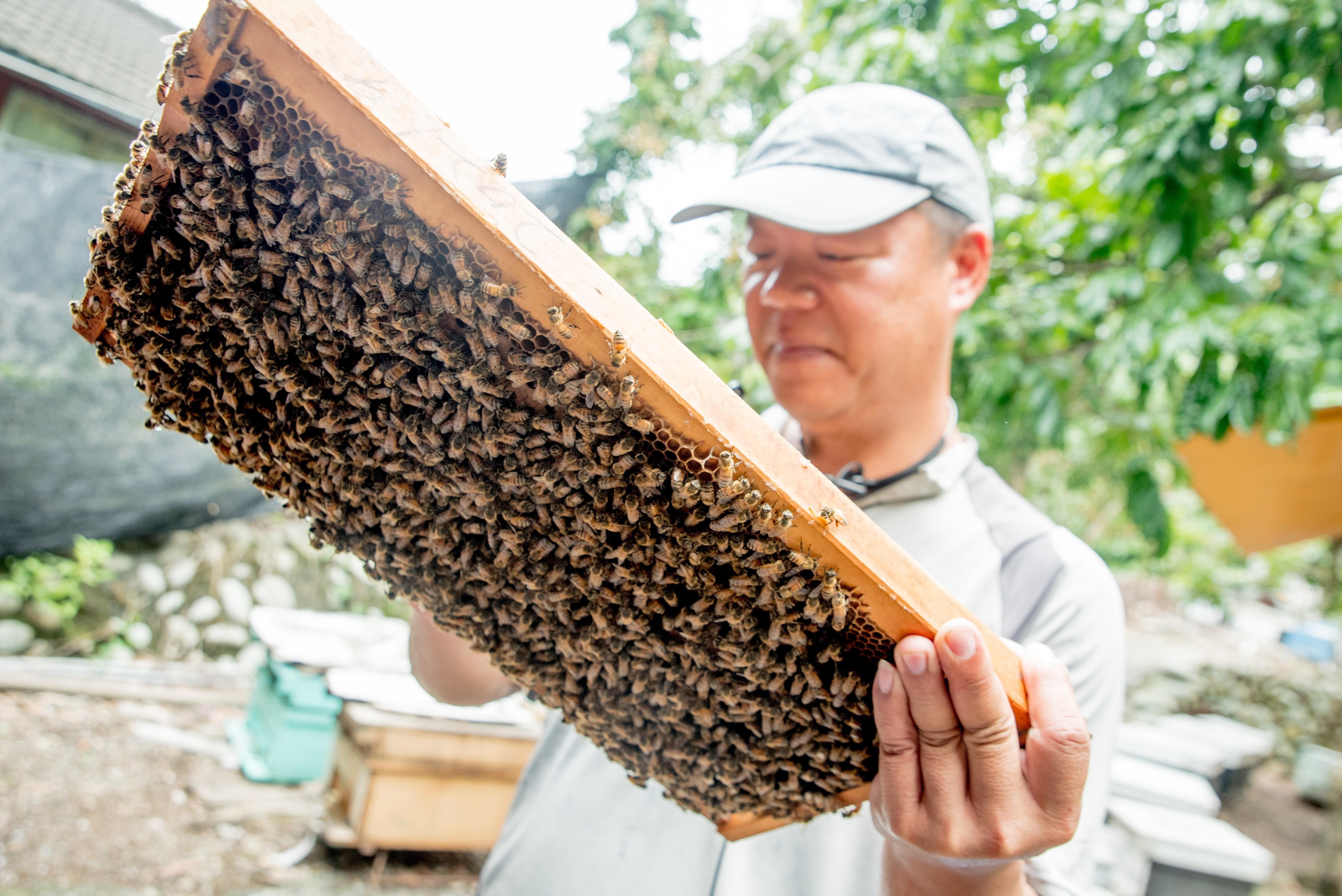 現今李東峰傳承了日華養蜂場,他的孩子也跟著他進出養蜂場,承襲著自己的歲月軌跡,3歲那年他也讓孩子嚐到了一口打開蜂箱的甜蜜,看小孩子滿臉的燦爛光輝,穿透樹葉落下的陽光照著,他彷彿看見了當年自己,那琥珀般金色耀眼的感動。